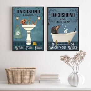 Kit 2 quadros de banheiro cão dachshund 24x18cm Moldura: madeira branca Informações do produto tire todas as suas dúvidas no descritivo abaixo: decoração para quarto, sala, cozinha, escritório, área gourmet e muito mais. Chega de paredes vazias medidas - cada peça tem 24x18cm a5 . Material do papel - papel fotográfico brilhante de altíssima resolução acabamento - todos os quadros são acompanhados de uma película de acetato para proteção da imagem. - os quadros são embalados de forma segura com plástico bolha com camada dupla de acordo com o tamanho dos quadros. Garantia - garantia de 3 meses. Meu quadro chegou. Como posso fixá-lo Você precisa apenas de um martelo e um prego, pois os quadros já vão acompanhados de penduradores. Esta é a forma mais indicada. Caso prefira, você pode utilizar uma fita dupla face neste caso, sugerimos de alta qualidade para evitar que descole e seu quadro caia . Como posso limpar meu quadro A limpeza é feita como um móvel comum da sua casa. Apenas um pano seco ou espanador são suficientes para tal