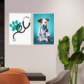 Kit 2 quadros decoração clínica veterinária 45x34cm Cor: moldura branca Informações do produto tire todas as suas dúvidas no descritivo abaixo: decoração para quarto, sala, cozinha, escritório, área gourmet e muito mais. Chega de paredes vazias. Medidas - cada peça tem 45x34cm a3 . Material do papel - papel fotográfico brilhante de altíssima resolução acabamento - todos os quadros são acompanhados de uma película de acetato para proteção da imagem. - os quadros são embalados de forma segura com plástico bolha com camada dupla de acordo com o tamanho dos quadros. Garantia - garantia de 3 meses. Meu quadro chegou. Como posso fixá-lo Você precisa apenas de um martelo e um prego, pois os quadros já vão acompanhados de penduradores. Esta é a forma mais indicada. Caso prefira, você pode utilizar uma fita dupla face neste caso, sugerimos de alta qualidade para evitar que descole e seu quadro caia . Como posso limpar meu quadro A limpeza é feita como um móvel comum da sua casa. Apenas um pano seco ou espanador são suficientes para tal