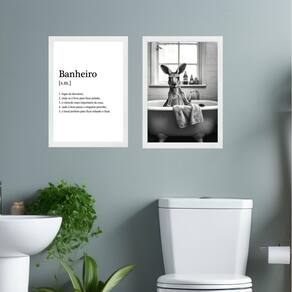 Kit 2 quadros decorar banheiro - canguru 33x24cm Cor: moldura branca Informações do produto tire todas as suas dúvidas no descritivo abaixo: decoração para quarto, sala, cozinha, escritório, área gourmet e muito mais. Chega de paredes vazias medidas - cada peça tem 33x24cm a4 . Material do papel - papel fotográfico brilhante de altíssima resolução acabamento - todos os quadros são acompanhados de uma película de acetato para proteção da imagem. - os quadros são embalados de forma segura com plástico bolha com camada dupla de acordo com o tamanho dos quadros. Garantia - garantia de 3 meses. Meu quadro chegou. Como posso fixá-lo Você precisa apenas de um martelo e um prego, pois os quadros já vão acompanhados de penduradores. Esta é a forma mais indicada. Caso prefira, você pode utilizar uma fita dupla face neste caso, sugerimos de alta qualidade para evitar que descole e seu quadro caia . Como posso limpar meu quadro A limpeza é feita como um móvel comum da sua casa. Apenas um pano seco ou espanador são suficientes para tal