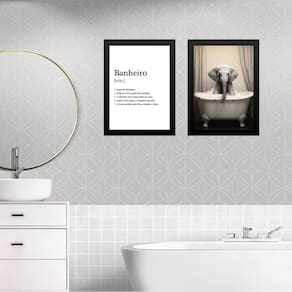 Kit 2 quadros decorar banheiro - elefantinho 33x24cm Cor: moldura preta Informações do produto tire todas as suas dúvidas no descritivo abaixo: decoração para quarto, sala, cozinha, escritório, área gourmet e muito mais. Chega de paredes vazias medidas - cada peça tem 33x24cm a4 . Material do papel - papel fotográfico brilhante de altíssima resolução acabamento - todos os quadros são acompanhados de uma película de acetato para proteção da imagem. - os quadros são embalados de forma segura com plástico bolha com camada dupla de acordo com o tamanho dos quadros. Garantia - garantia de 3 meses. Meu quadro chegou. Como posso fixá-lo Você precisa apenas de um martelo e um prego, pois os quadros já vão acompanhados de penduradores. Esta é a forma mais indicada. Caso prefira, você pode utilizar uma fita dupla face neste caso, sugerimos de alta qualidade para evitar que descole e seu quadro caia . Como posso limpar meu quadro A limpeza é feita como um móvel comum da sua casa. Apenas um pano seco ou espanador são suficientes para tal