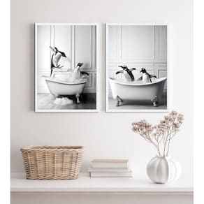 Kit 2 quadros para decorar banheiro- pinguins 24x18cm - com vidro Moldura: madeira preta Informações do produto tire todas as suas dúvidas no descritivo abaixo: decoração para quarto, sala, cozinha, escritório, área gourmet e muito mais. Chega de paredes vazias medidas - cada peça tem 24x18cm a5 . Material do papel - papel fotográfico brilhante de altíssima resolução acabamento - todos os quadros são acompanhados de vidro para proteção da imagem. - moldura em madeira maciça na cor preta ou branca conforme produto escolhido e pendurador . - os quadros são embalados de forma segura com plástico bolha com camada dupla de acordo com o tamanho dos quadros. Garantia - garantia de 3 meses. Meu quadro chegou. Como posso fixá-lo Você precisa apenas de um martelo e um prego, pois os quadros já vão acompanhados de penduradores. Esta é a forma mais indicada. Como posso limpar meu quadro A limpeza é feita como um móvel comum da sua casa. Apenas um pano seco ou espanador são suficientes para tal Ean: 7893035608258