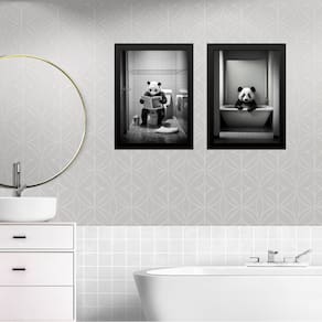 Kit 2 quadros decorar banheiro - urso panda 33x24cm - com vidro Cor: moldura preta Informações do produto tire todas as suas dúvidas no descritivo abaixo: decoração para quarto, sala, cozinha, escritório, área gourmet e muito mais. Chega de paredes vazias medidas - cada peça tem 33x24cm a4 . Material do papel - papel fotográfico brilhante de altíssima resolução acabamento - todos os quadros são acompanhados de vidro para proteção da imagem. - moldura em madeira maciça na cor preta ou branca conforme produto escolhido e pendurador . - os quadros são embalados de forma segura com plástico bolha com camada dupla de acordo com o tamanho dos quadros. Garantia - garantia de 3 meses. Meu quadro chegou. Como posso fixá-lo Você precisa apenas de um martelo e um prego, pois os quadros já vão acompanhados de penduradores. Esta é a forma mais indicada. Como posso limpar meu quadro A limpeza é feita como um móvel comum da sua casa. Apenas um pano seco ou espanador são suficientes para tal