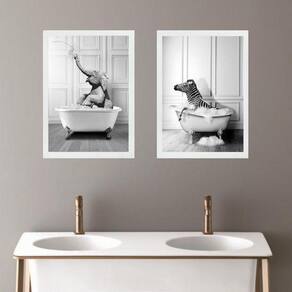 Kit 2 quadros para decorar banheiro - zebra e elefante 24x18cm