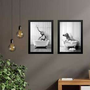 Kit 2 Quadros Decorar Banheiro - Zebra E Elefante 24X18Cm