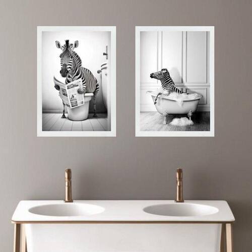 Kit 2 quadros para decorar banheiro - zebrinha 24x18cm - com vidro Moldura: madeira preta Informações do produto tire todas as suas dúvidas no descritivo abaixo: decoração para quarto, sala, cozinha, escritório, área gourmet e muito mais. Chega de paredes vazias medidas - cada peça tem 24x18cm a5 . Material do papel - papel fotográfico brilhante de altíssima resolução acabamento - todos os quadros são acompanhados de vidro para proteção da imagem. - moldura em madeira maciça na cor preta ou branca conforme produto escolhido e pendurador . - os quadros são embalados de forma segura com plástico bolha com camada dupla de acordo com o tamanho dos quadros. Garantia - garantia de 3 meses. Meu quadro chegou. Como posso fixá-lo Você precisa apenas de um martelo e um prego, pois os quadros já vão acompanhados de penduradores. Esta é a forma mais indicada. Como posso limpar meu quadro A limpeza é feita como um móvel comum da sua casa. Apenas um pano seco ou espanador são suficientes para tal