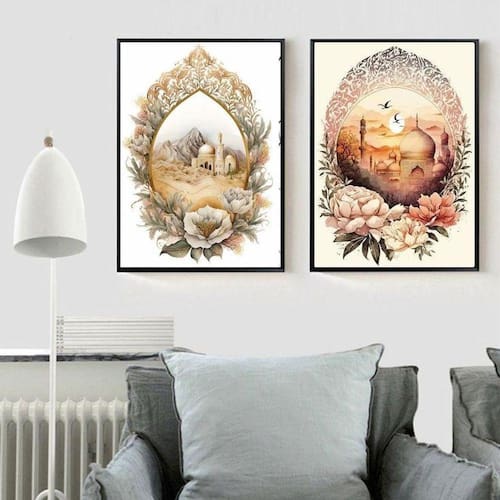 Kit 2 quadros decorativos artes muçulmanas 33x24cm