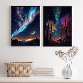 Kit 2 quadros decorativos aurora boreal 45x34cm Moldura: madeira preta Informações do produto tire todas as suas dúvidas no descritivo abaixo: decoração para quarto, sala, cozinha, escritório, área gourmet e muito mais. Chega de paredes vazias. Medidas - cada peça tem 45x34cm a3 . Material do papel - papel fotográfico brilhante de altíssima resolução acabamento - todos os quadros são acompanhados de uma película de acetato para proteção da imagem. - os quadros são embalados de forma segura com plástico bolha com camada dupla de acordo com o tamanho dos quadros. Garantia - garantia de 3 meses. Meu quadro chegou. Como posso fixá-lo Você precisa apenas de um martelo e um prego, pois os quadros já vão acompanhados de penduradores. Esta é a forma mais indicada. Caso prefira, você pode utilizar uma fita dupla face neste caso, sugerimos de alta qualidade para evitar que descole e seu quadro caia . Como posso limpar meu quadro A limpeza é feita como um móvel comum da sua casa. Apenas um pano seco ou espanador são suficientes para tal Ean: 7897297539527