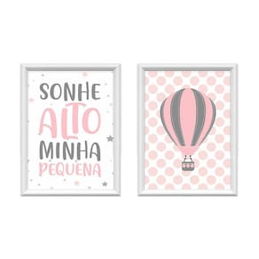 Kit 2 Quadros Decorativos Balão Sonhe Alto 34x44cm