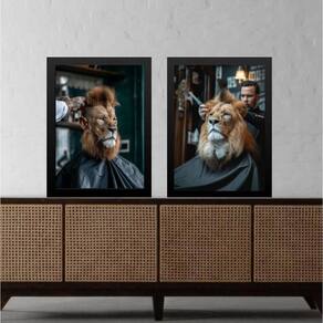 Kit 2 Quadros Decorativos Barbearia - Leão 45X34Cm