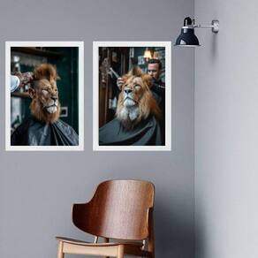 Kit 2 quadros decorativos barbearia - leão 45x34cm