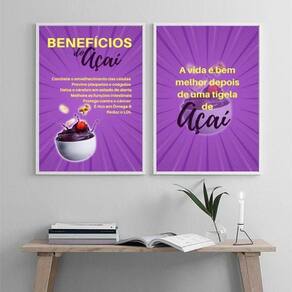 Kit 2 quadros decorativos benefícios do açaí 45x34cm Moldura: madeira branca Informações do produto tire todas as suas dúvidas no descritivo abaixo: decoração para quarto, sala, cozinha, escritório, área gourmet e muito mais. Chega de paredes vazias. Medidas - cada peça tem 45x34cm a3 . Material do papel - papel fotográfico brilhante de altíssima resolução acabamento - todos os quadros são acompanhados de uma película de acetato para proteção da imagem. - os quadros são embalados de forma segura com plástico bolha com camada dupla de acordo com o tamanho dos quadros. Garantia - garantia de 3 meses. Meu quadro chegou. Como posso fixá-lo Você precisa apenas de um martelo e um prego, pois os quadros já vão acompanhados de penduradores. Esta é a forma mais indicada. Caso prefira, você pode utilizar uma fita dupla face neste caso, sugerimos de alta qualidade para evitar que descole e seu quadro caia . Como posso limpar meu quadro A limpeza é feita como um móvel comum da sua casa. Apenas um pano seco ou espanador são suficientes para tal