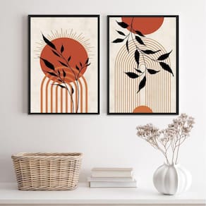 Com esse kit, você pode decorar seu quarto, sala, cozinha, escritório, área gourmet e muito mais. Chega de paredes vazias! Dê vida aos seus espaços com os Quadros Decorativos Boho Sol Folhas Terracota.