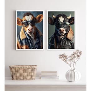 Kit 2 quadros decorativos boi fashion 24x18cm