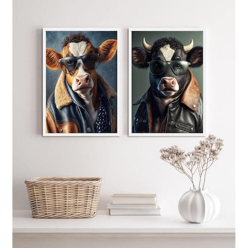 Kit 2 Quadros Decorativos Boi Fashion 24X18Cm