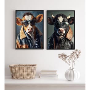 Kit 2 quadros decorativos boi fashion 24x18cm Moldura: madeira branca Informações do produto tire todas as suas dúvidas no descritivo abaixo: decoração para quarto, sala, cozinha, escritório, área gourmet e muito mais. Chega de paredes vazias medidas - cada peça tem 24x18cm a5 . Material do papel - papel fotográfico brilhante de altíssima resolução acabamento - todos os quadros são acompanhados de uma película de acetato para proteção da imagem. - os quadros são embalados de forma segura com plástico bolha com camada dupla de acordo com o tamanho dos quadros. Garantia - garantia de 3 meses. Meu quadro chegou. Como posso fixá-lo Você precisa apenas de um martelo e um prego, pois os quadros já vão acompanhados de penduradores. Esta é a forma mais indicada. Caso prefira, você pode utilizar uma fita dupla face neste caso, sugerimos de alta qualidade para evitar que descole e seu quadro caia . Como posso limpar meu quadro A limpeza é feita como um móvel comum da sua casa. Apenas um pano seco ou espanador são suficientes para tal