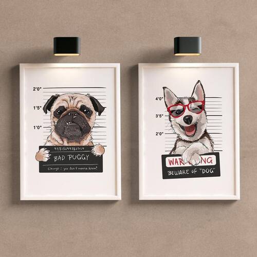 Conteúdo Da Embalagem Kit 2 Quadros Decorativos Cachorros Wallze 24x33cm