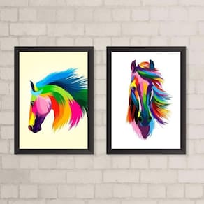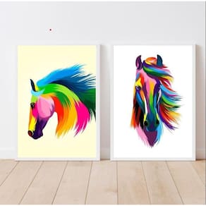 O Kit 2 Quadros Decorativos Arte Cavalos Coloridos 24X18Cm é perfeito para adicionar um toque de estilo e personalidade à decoração de diversos ambientes, como quarto, sala, cozinha, escritório, área gourmet e muito mais. Cada peça do kit possui medidas de 24x18cm A5 e é acompanhada de uma moldura de madeira branca, que proporciona um acabamento elegante e sofisticado. Além disso, os quadros são feitos em papel fotográfico brilhante de altíssima resolução, garantindo a qualidade e nitidez da imagem. Para proteger a imagem, cada quadro é acompanhado de uma película de acetato. Além disso, eles são embalados de forma segura com plástico bolha de camada dupla, garantindo que cheguem em perfeito estado. A fixação dos quadros é muito fácil, pois eles já vêm com penduradores. Basta utilizar um martelo e um prego para fixá-los na parede. Caso prefira, você também pode utilizar fita dupla face de alta qualidade para evitar que descolem e caiam. A limpeza dos quadros é simples e prática, podendo ser feita com um pano seco ou espanador, assim como um móvel comum da sua casa. O Kit 2 Quadros Decorativos Arte Cavalos Coloridos 24X18Cm possui de 3 meses, garantindo a sua satisfação e tranquilidade na compra. Adquira agora mesmo esse lindo kit de quadros e transforme a decoração da sua casa com muito estilo e bom gosto! Marca: Não Informado Ean: 7893077627385
