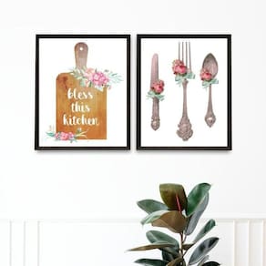 Kit 2 quadros decorativos cozinha abençoada 24x18cm - com vidro Moldura: madeira branca Informações do produto tire todas as suas dúvidas no descritivo abaixo: decoração para quarto, sala, cozinha, escritório, área gourmet e muito mais. Chega de paredes vazias medidas - cada peça tem 24x18cm a5 . Material do papel - papel fotográfico brilhante de altíssima resolução acabamento - todos os quadros são acompanhados de vidro para proteção da imagem. - moldura em madeira maciça na cor preta ou branca conforme produto escolhido e pendurador . - os quadros são embalados de forma segura com plástico bolha com camada dupla de acordo com o tamanho dos quadros. Garantia - garantia de 3 meses. Meu quadro chegou. Como posso fixá-lo Você precisa apenas de um martelo e um prego, pois os quadros já vão acompanhados de penduradores. Esta é a forma mais indicada. Como posso limpar meu quadro A limpeza é feita como um móvel comum da sua casa. Apenas um pano seco ou espanador são suficientes para tal