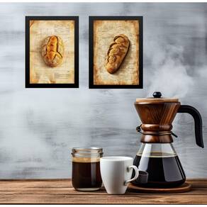 Kit 2 quadros decorativos cozinha pães vintage 45x34cm Cor: moldura branca Informações do produto tire todas as suas dúvidas no descritivo abaixo: decoração para quarto, sala, cozinha, escritório, área gourmet e muito mais. Chega de paredes vazias. Medidas - cada peça tem 45x34cm a3 . Material do papel - papel fotográfico brilhante de altíssima resolução acabamento - todos os quadros são acompanhados de uma película de acetato para proteção da imagem. - os quadros são embalados de forma segura com plástico bolha com camada dupla de acordo com o tamanho dos quadros. Garantia - garantia de 3 meses. Meu quadro chegou. Como posso fixá-lo Você precisa apenas de um martelo e um prego, pois os quadros já vão acompanhados de penduradores. Esta é a forma mais indicada. Caso prefira, você pode utilizar uma fita dupla face neste caso, sugerimos de alta qualidade para evitar que descole e seu quadro caia . Como posso limpar meu quadro A limpeza é feita como um móvel comum da sua casa. Apenas um pano seco ou espanador são suficientes para tal
