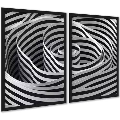 Kit 2 quadros decorativos espiral listras branco preto 45x34cm Cor: moldura branca Informações do produto tire todas as suas dúvidas no descritivo abaixo: decoração para quarto, sala, cozinha, escritório, área gourmet e muito mais. Chega de paredes vazias. Medidas - cada peça tem 45x34cm a3 . Material do papel - papel fotográfico brilhante de altíssima resolução acabamento - todos os quadros são acompanhados de uma película de acetato para proteção da imagem. - os quadros são embalados de forma segura com plástico bolha com camada dupla de acordo com o tamanho dos quadros. - de 3 meses. Meu quadro chegou. Como posso fixá-lo Você precisa apenas de um martelo e um prego, pois os quadros já vão acompanhados de penduradores. Esta é a forma mais indicada. Caso prefira, você pode utilizar uma fita dupla face neste caso, sugerimos de alta qualidade para evitar que descole e seu quadro caia . Como posso limpar meu quadro A limpeza é feita como um móvel comum da sua casa. Apenas um pano seco ou espanador são suficientes para tal