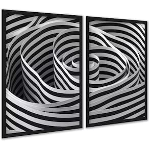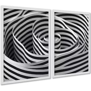 Kit 2 quadros decorativos espiral listras branco preto 33x24cm Cor: moldura branca Informações do produto tire todas as suas dúvidas no descritivo abaixo: decoração para quarto, sala, cozinha, escritório, área gourmet e muito mais. Chega de paredes vazias medidas - cada peça tem 33x24cm a4 . Material do papel - papel fotográfico brilhante de altíssima resolução acabamento - todos os quadros são acompanhados de uma película de acetato para proteção da imagem. - os quadros são embalados de forma segura com plástico bolha com camada dupla de acordo com o tamanho dos quadros. - de 3 meses. Meu quadro chegou. Como posso fixá-lo Você precisa apenas de um martelo e um prego, pois os quadros já vão acompanhados de penduradores. Esta é a forma mais indicada. Caso prefira, você pode utilizar uma fita dupla face neste caso, sugerimos de alta qualidade para evitar que descole e seu quadro caia . Como posso limpar meu quadro A limpeza é feita como um móvel comum da sua casa. Apenas um pano seco ou espanador são suficientes para tal