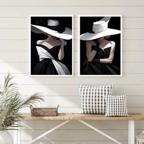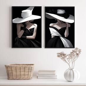 Kit 2 quadros decorativos fashion damas em preto e branco 45x34cm - com vidro Moldura: madeira branca Informações do produto tire todas as suas dúvidas no descritivo abaixo: decoração para quarto, sala, cozinha, escritório, área gourmet e muito mais. Chega de paredes vazias medidas - cada peça tem 45x34cm a3 . Material do papel - papel fotográfico brilhante de altíssima resolução acabamento - todos os quadros são acompanhados de vidro para proteção da imagem. - moldura em madeira maciça na cor preta ou branca conforme produto escolhido e pendurador . - os quadros são embalados de forma segura com plástico bolha com camada dupla de acordo com o tamanho dos quadros. Garantia - garantia de 3 meses. Meu quadro chegou. Como posso fixá-lo Você precisa apenas de um martelo e um prego, pois os quadros já vão acompanhados de penduradores. Esta é a forma mais indicada. Como posso limpar meu quadro A limpeza é feita como um móvel comum da sua casa. Apenas um pano seco ou espanador são suficientes para tal Ean: 7893979412669