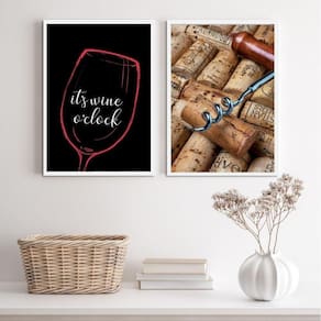 Kit 2 quadros decorativos hora do vinho 33x24cm - com vidro