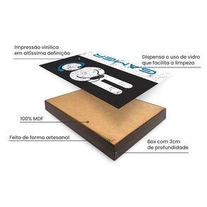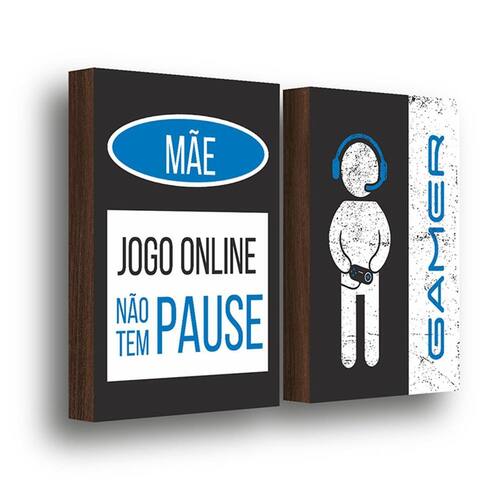 Kit 2 Quadros Decorativos Jogo Online Não Tem Pause 30x40cm Características Gerais do Produto: Benefícios do produto: Mostre a todos que você é um verdadeiro entusiasta dos jogos e torne seu ambiente mais inspirador com esses quadros. Dimensões AxLxP CM : 40 X 30 X 3 Cada peça Formato: Retangular Produzido em: MDF e Impressão vinílica em altíssima definição Cor acabamento: Colorido : Este produto possui junto ao fabricante contra defeitos de fabricação Aplicação: Parede Acompanha o produto: 02 Quadros 02 Kit instalação : Este produto possui contra defeitos de fabricação Marca: Meu Rodapé Ean: 7893681288620