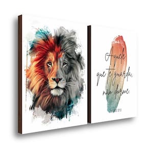 Kit 2 Quadros Decorativos Leão Pincelado com Frase 50x70cm
