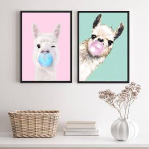 O Kit 2 Quadros Decorativos Lhamas Bubble Gum é perfeito para dar um toque especial à decoração do seu quarto, sala, cozinha, escritório, área gourmet e muito mais. Chega de paredes vazias! Cada peça tem o tamanho de 33x24cm A4 , ideal para se encaixar em qualquer ambiente.
