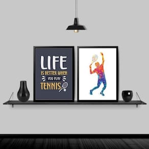 Kit 2 quadros decorativos life tennis 33x24cm - com vidro Moldura: madeira branca Informações do produto tire todas as suas dúvidas no descritivo abaixo: decoração para quarto, sala, cozinha, escritório, área gourmet e muito mais. Chega de paredes vazias medidas - cada peça tem 33x24cm a4 . Material do papel - papel fotográfico brilhante de altíssima resolução acabamento - todos os quadros são acompanhados de vidro para proteção da imagem. - moldura em madeira maciça na cor preta e pendurador . - os quadros são embalados de forma segura com plástico bolha com camada dupla de acordo com o tamanho dos quadros. - de 3 meses. Meu quadro chegou. Como posso fixá-lo Você precisa apenas de um martelo e um prego, pois os quadros já vão acompanhados de penduradores. Esta é a forma mais indicada. Como posso limpar meu quadro A limpeza é feita como um móvel comum da sua casa. Apenas um pano seco ou espanador são suficientes para tal