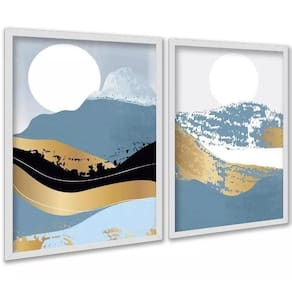 Kit 2 quadros decorativos montanhas azul com dourado 33x24cm Cor: moldura branca Informações do produto tire todas as suas dúvidas no descritivo abaixo: decoração para quarto, sala, cozinha, escritório, área gourmet e muito mais. Chega de paredes vazias medidas - cada peça tem 33x24cm a4 . Material do papel - papel fotográfico brilhante de altíssima resolução acabamento - todos os quadros são acompanhados de uma película de acetato para proteção da imagem. - os quadros são embalados de forma segura com plástico bolha com camada dupla de acordo com o tamanho dos quadros. - de 3 meses. Meu quadro chegou. Como posso fixá-lo Você precisa apenas de um martelo e um prego, pois os quadros já vão acompanhados de penduradores. Esta é a forma mais indicada. Caso prefira, você pode utilizar uma fita dupla face neste caso, sugerimos de alta qualidade para evitar que descole e seu quadro caia . Como posso limpar meu quadro A limpeza é feita como um móvel comum da sua casa. Apenas um pano seco ou espanador são suficientes para tal