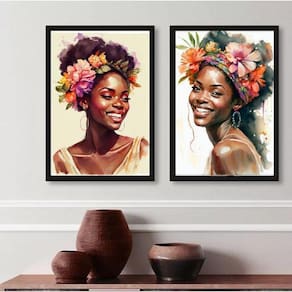 Kit 2 quadros decorativos mulheres pretas- aquarela 33x24cm Moldura: madeira preta Informações do produto tire todas as suas dúvidas no descritivo abaixo: decoração para quarto, sala, cozinha, escritório, área gourmet e muito mais. Chega de paredes vazias medidas - cada peça tem 33x24cm a4 . Material do papel - papel fotográfico brilhante de altíssima resolução acabamento - todos os quadros são acompanhados de uma película de acetato para proteção da imagem. - os quadros são embalados de forma segura com plástico bolha com camada dupla de acordo com o tamanho dos quadros. Garantia - garantia de 3 meses. Meu quadro chegou. Como posso fixá-lo Você precisa apenas de um martelo e um prego, pois os quadros já vão acompanhados de penduradores. Esta é a forma mais indicada. Caso prefira, você pode utilizar uma fita dupla face neste caso, sugerimos de alta qualidade para evitar que descole e seu quadro caia . Como posso limpar meu quadro A limpeza é feita como um móvel comum da sua casa. Apenas um pano seco ou espanador são suficientes para tal Ean: 7899792938041
