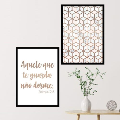 Kit 2 Quadros Decorativos O Que Te Guarda Não Dorme - Tamanho: A4 (20 x 30) / Acabamento: Película de acetato / Moldura: Madeira preta