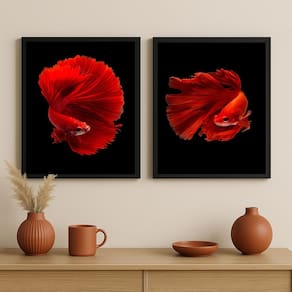 Kit 2 Quadros Decorativos Peixes Beta 45x34cm - com vidro - Cor: Moldura preta