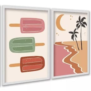 Kit 2 quadros decorativos praia - picolés 33x24cm Cor: moldura preta Informações do produto tire todas as suas dúvidas no descritivo abaixo: decoração para quarto, sala, cozinha, escritório, área gourmet e muito mais. Chega de paredes vazias medidas - cada peça tem 33x24cm a4 . Material do papel - papel fotográfico brilhante de altíssima resolução acabamento - todos os quadros são acompanhados de uma película de acetato para proteção da imagem. - os quadros são embalados de forma segura com plástico bolha com camada dupla de acordo com o tamanho dos quadros. - de 3 meses. Meu quadro chegou. Como posso fixá-lo Você precisa apenas de um martelo e um prego, pois os quadros já vão acompanhados de penduradores. Esta é a forma mais indicada. Caso prefira, você pode utilizar uma fita dupla face neste caso, sugerimos de alta qualidade para evitar que descole e seu quadro caia . Como posso limpar meu quadro A limpeza é feita como um móvel comum da sua casa. Apenas um pano seco ou espanador são suficientes para tal Marca: Não Informado