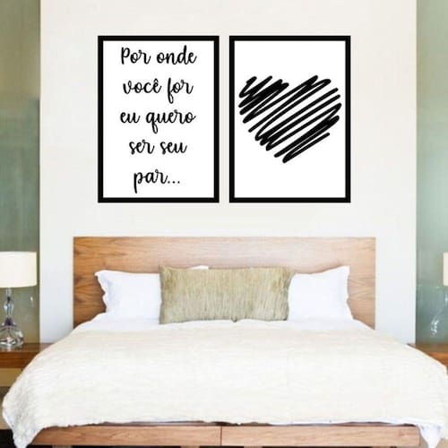 Kit 2 Quadros Decorativos Quero Ser Seu Par - Tamanho: A4 (20 x 30) / Acabamento: Película de acetato / Moldura: Madeira preta