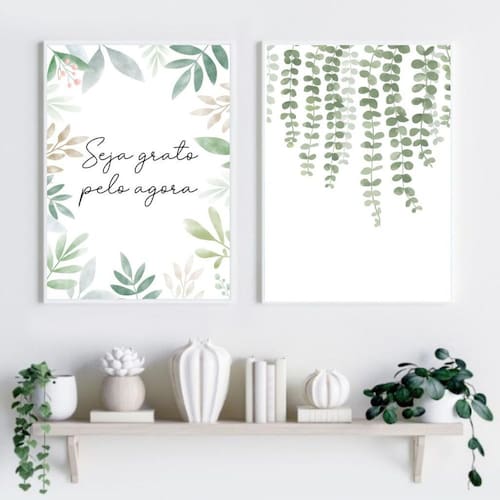 Kit 2 quadros decorativos seja grato - folhas 24x18cm - com vidro Moldura: madeira branca Informações do produto tire todas as suas dúvidas no descritivo abaixo: decoração para quarto, sala, cozinha, escritório, área gourmet e muito mais. Chega de paredes vazias medidas - cada peça tem 24x18cm a5 . Material do papel - papel fotográfico brilhante de altíssima resolução acabamento - todos os quadros são acompanhados de vidro para proteção da imagem. - moldura em madeira maciça na cor preta ou branca conforme produto escolhido e pendurador . - os quadros são embalados de forma segura com plástico bolha com camada dupla de acordo com o tamanho dos quadros. - de 3 meses. Meu quadro chegou. Como posso fixá-lo Você precisa apenas de um martelo e um prego, pois os quadros já vão acompanhados de penduradores. Esta é a forma mais indicada. Como posso limpar meu quadro A limpeza é feita como um móvel comum da sua casa. Apenas um pano seco ou espanador são suficientes para tal Marca: Não Informado