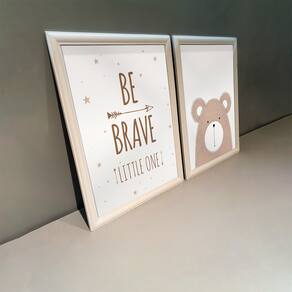 Kit 2 Quadros Decorativos Ursinho Be Brave 34x44cm