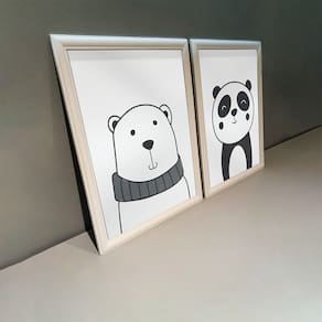 Kit 2 Quadros Decorativos Urso e Panda 34x44cm