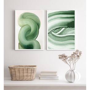Kit 2 Quadros Decorativos Verdes Abstratos- Ondas 33X24Cm