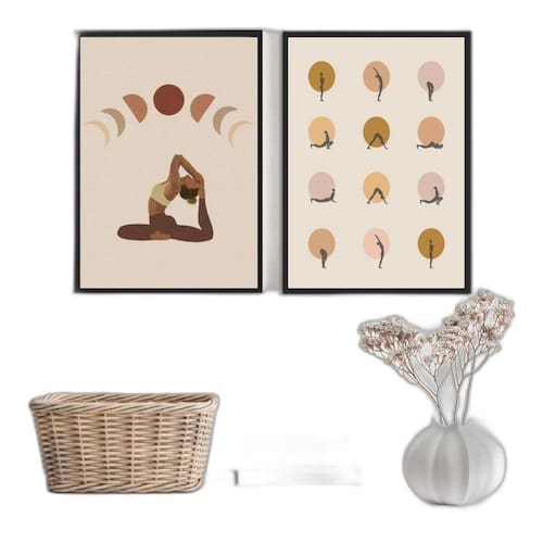 O Kit 2 Quadros Decorativos Yoga- Posições 45X34Cm é perfeito para quem busca uma decoração única e inspiradora. Com molduras de madeira preta, esses quadros são ideais para dar vida e personalidade a qualquer ambiente, seja no quarto, sala, cozinha, escritório, área gourmet e muito mais.