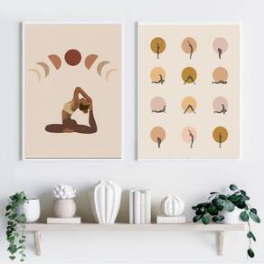 Kit 2 Quadros Decorativos Yoga Posições 33x24cm Com Vidro