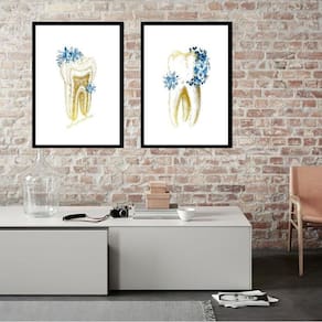Kit 2 quadros dentes floral - 60x48cm Moldura: madeira branca Informações do produto tire todas as suas dúvidas no descritivo abaixo: decoração para quarto, sala, cozinha, escritório, área gourmet e muito mais. Chega de paredes vazias medidas - cada peça tem 60x48cm . Material do papel - papel fotográfico brilhante de altíssima resolução acabamento - todos os quadros são acompanhados de vidro para proteção da imagem. - moldura em madeira maciça na cor preta ou branca conforme produto escolhido e pendurador. - paspatur branco com 7cm de largura - os quadros são embalados de forma segura com plástico bolha com camada dupla de acordo com o tamanho dos quadros. - de 3 meses. Meu quadro chegou. Como posso fixá-lo Você precisa apenas de um martelo e um prego, pois os quadros já vão acompanhados de penduradores. Esta é a forma mais indicada. Como posso limpar meu quadro A limpeza é feita como um móvel comum da sua casa. Apenas um pano seco ou espanador são suficientes para tal Marca: Não Informado Ean: 7898970720300