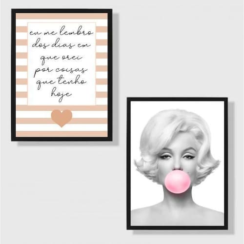 Kit 2 quadros dias em que orei chiclete 45x34cm Moldura: madeira preta Informações do produto tire todas as suas dúvidas no descritivo abaixo: decoração para quarto, sala, cozinha, escritório, área gourmet e muito mais. Chega de paredes vazias medidas - cada peça tem 45x34cm a3 . Material do papel - papel fotográfico brilhante de altíssima resolução acabamento - todos os quadros são acompanhados de uma película de acetato para proteção da imagem. - moldura em madeira maciça na cor preta e pendurador móvel que pode ser retirado facilmente caso deseje fixar com fita dupla face. - os quadros são embalados de forma segura com plástico bolha com camada dupla de acordo com o tamanho dos quadros.