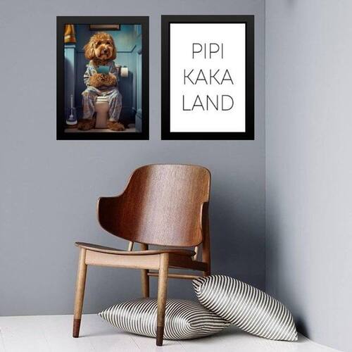 Kit 2 quadros divertidos banheiro - cachorrinho 33x24cm - com vidro Moldura: madeira branca Informações do produto tire todas as suas dúvidas no descritivo abaixo: decoração para quarto, sala, cozinha, escritório, área gourmet e muito mais. Chega de paredes vazias medidas - cada peça tem 33x24cm a4 . Material do papel - papel fotográfico brilhante de altíssima resolução acabamento - todos os quadros são acompanhados de vidro para proteção da imagem. - moldura em madeira maciça na cor preta ou branca conforme produto escolhido e pendurador . - os quadros são embalados de forma segura com plástico bolha com camada dupla de acordo com o tamanho dos quadros. Garantia - garantia de 3 meses. Meu quadro chegou. Como posso fixá-lo Você precisa apenas de um martelo e um prego, pois os quadros já vão acompanhados de penduradores. Esta é a forma mais indicada. Como posso limpar meu quadro A limpeza é feita como um móvel comum da sua casa. Apenas um pano seco ou espanador são suficientes para tal