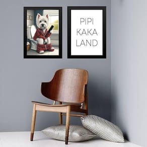 Kit 2 quadros divertidos banheiro - cãozinho 24x18cm Moldura: madeira preta Informações do produto tire todas as suas dúvidas no descritivo abaixo: decoração para quarto, sala, cozinha, escritório, área gourmet e muito mais. Chega de paredes vazias medidas - cada peça tem 24x18cm a5 . Material do papel - papel fotográfico brilhante de altíssima resolução acabamento - todos os quadros são acompanhados de uma película de acetato para proteção da imagem. - os quadros são embalados de forma segura com plástico bolha com camada dupla de acordo com o tamanho dos quadros. Garantia - garantia de 3 meses. Meu quadro chegou. Como posso fixá-lo Você precisa apenas de um martelo e um prego, pois os quadros já vão acompanhados de penduradores. Esta é a forma mais indicada. Caso prefira, você pode utilizar uma fita dupla face neste caso, sugerimos de alta qualidade para evitar que descole e seu quadro caia . Como posso limpar meu quadro A limpeza é feita como um móvel comum da sua casa. Apenas um pano seco ou espanador são suficientes para tal