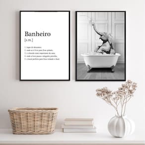 Kit 2 quadros divertidos banheiro - elefante 24x18cm - com vidro Moldura: madeira preta Informações do produto tire todas as suas dúvidas no descritivo abaixo: decoração para quarto, sala, cozinha, escritório, área gourmet e muito mais. Chega de paredes vazias medidas - cada peça tem 24x18cm a5 . Material do papel - papel fotográfico brilhante de altíssima resolução acabamento - todos os quadros são acompanhados de vidro para proteção da imagem. - moldura em madeira maciça na cor preta ou branca conforme produto escolhido e pendurador . - os quadros são embalados de forma segura com plástico bolha com camada dupla de acordo com o tamanho dos quadros. Garantia - garantia de 3 meses. Meu quadro chegou. Como posso fixá-lo Você precisa apenas de um martelo e um prego, pois os quadros já vão acompanhados de penduradores. Esta é a forma mais indicada. Como posso limpar meu quadro A limpeza é feita como um móvel comum da sua casa. Apenas um pano seco ou espanador são suficientes para tal
