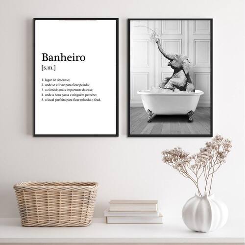 Kit 2 quadros divertidos banheiro - elefante 24x18cm Moldura: madeira preta Informações do produto tire todas as suas dúvidas no descritivo abaixo: decoração para quarto, sala, cozinha, escritório, área gourmet e muito mais. Chega de paredes vazias medidas - cada peça tem 24x18cm a5 . Material do papel - papel fotográfico brilhante de altíssima resolução acabamento - todos os quadros são acompanhados de uma película de acetato para proteção da imagem. - os quadros são embalados de forma segura com plástico bolha com camada dupla de acordo com o tamanho dos quadros. Garantia - garantia de 3 meses. Meu quadro chegou. Como posso fixá-lo Você precisa apenas de um martelo e um prego, pois os quadros já vão acompanhados de penduradores. Esta é a forma mais indicada. Caso prefira, você pode utilizar uma fita dupla face neste caso, sugerimos de alta qualidade para evitar que descole e seu quadro caia . Como posso limpar meu quadro A limpeza é feita como um móvel comum da sua casa. Apenas um pano seco ou espanador são suficientes para tal