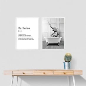 Kit 2 quadros divertidos banheiro - elefante 33x24cm - com vidro Moldura: madeira preta Informações do produto tire todas as suas dúvidas no descritivo abaixo: decoração para quarto, sala, cozinha, escritório, área gourmet e muito mais. Chega de paredes vazias medidas - cada peça tem 33x24cm a4 . Material do papel - papel fotográfico brilhante de altíssima resolução acabamento - todos os quadros são acompanhados de vidro para proteção da imagem. - moldura em madeira maciça na cor preta ou branca conforme produto escolhido e pendurador . - os quadros são embalados de forma segura com plástico bolha com camada dupla de acordo com o tamanho dos quadros. Garantia - garantia de 3 meses. Meu quadro chegou. Como posso fixá-lo Você precisa apenas de um martelo e um prego, pois os quadros já vão acompanhados de penduradores. Esta é a forma mais indicada. Como posso limpar meu quadro A limpeza é feita como um móvel comum da sua casa. Apenas um pano seco ou espanador são suficientes para tal